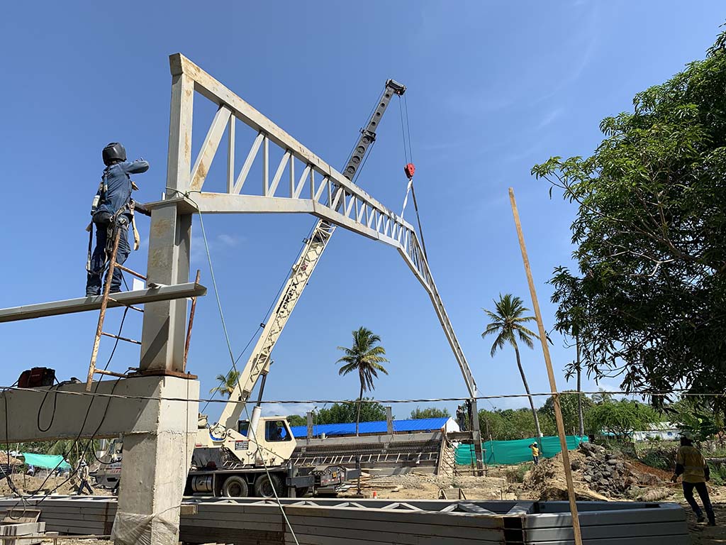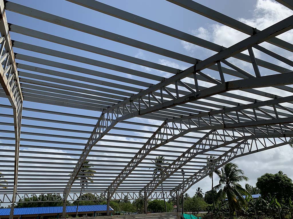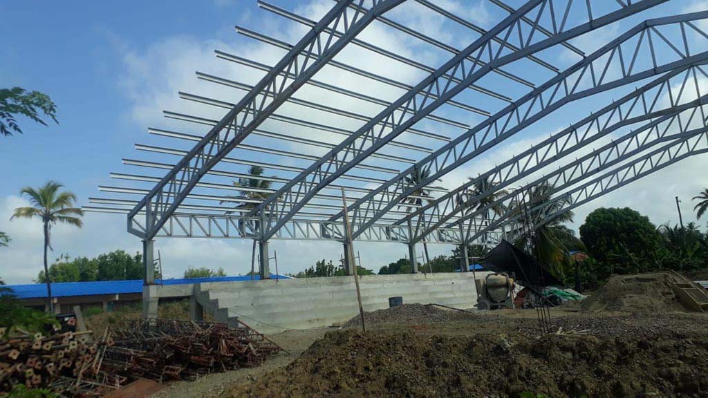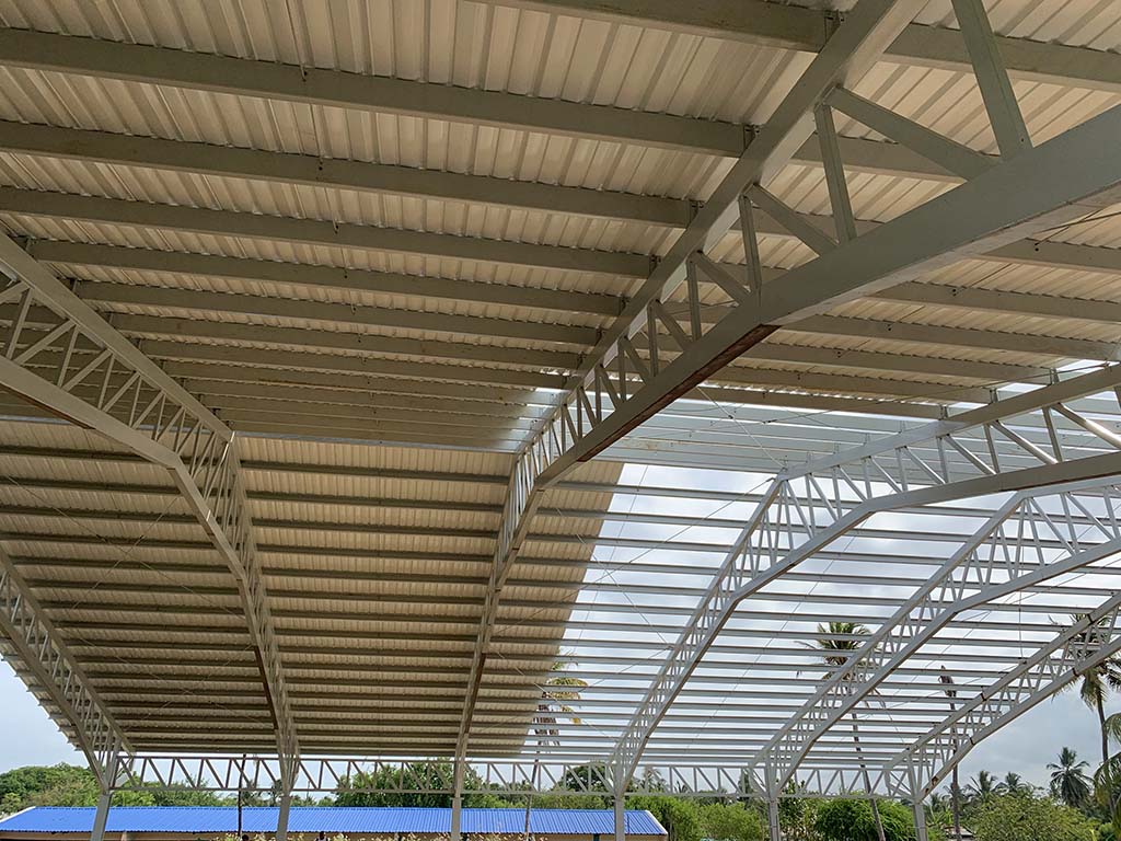 Construcción de cubierta de centro de integración ciudadana del corregimiento de Uberos de San Juan de Urabá. Fabricación y montaje de estructura metálica con pórticos en vigas tipo H y cerchas en tubería estructural. Correas de cubierta en perfiles en C, con arriostramiento en varillas de acero lisas. Cubierta de teja tipo termo acústica a dos aguas.