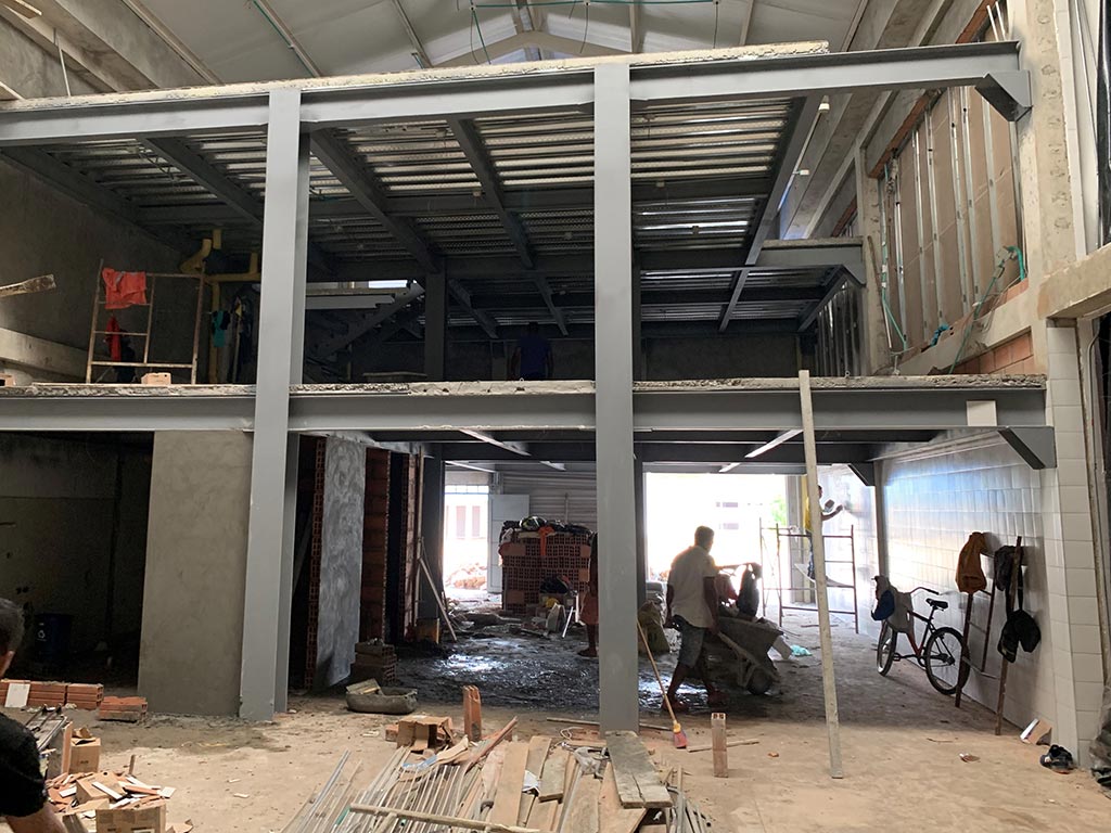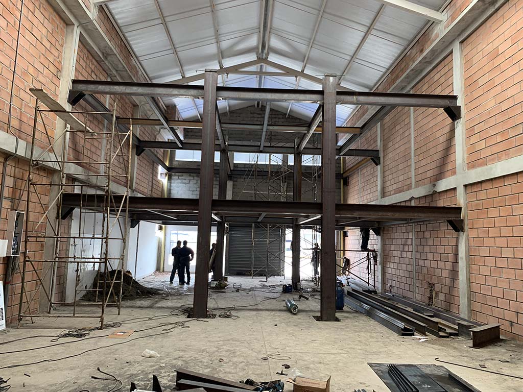 Construcción de edificio administrativo Fármacos de la costa LTDA. Fabricación de estructura metálica de tres niveles con columnas en vigas tipo H; vigas de entrepiso tipo IPE. Losa de placa con lamina colaborante tipo steeldeck.